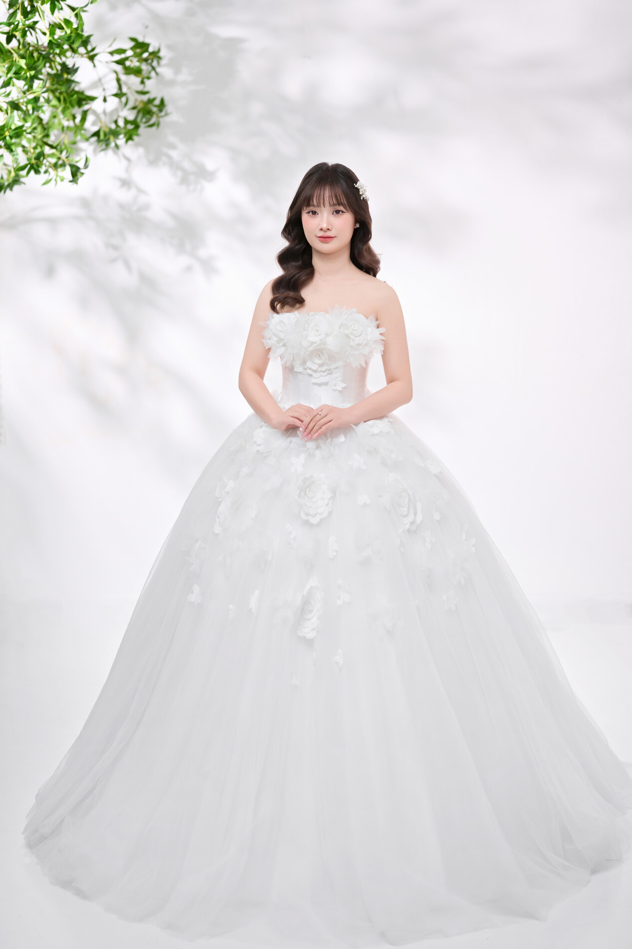 “Định mệnh đã dẫn lối em đến khoảnh khắc tuyệt vời này, khi em được khoác lên mình chiếc váy cưới tinh khôi, trao trọn trái tim cho mối tình đầu của mình, là anh.”
