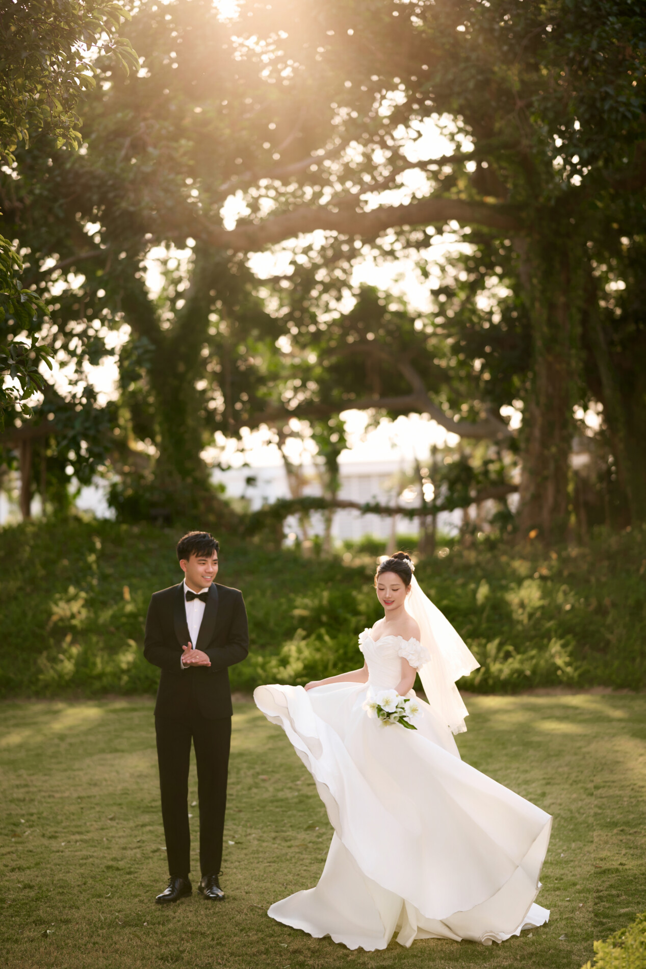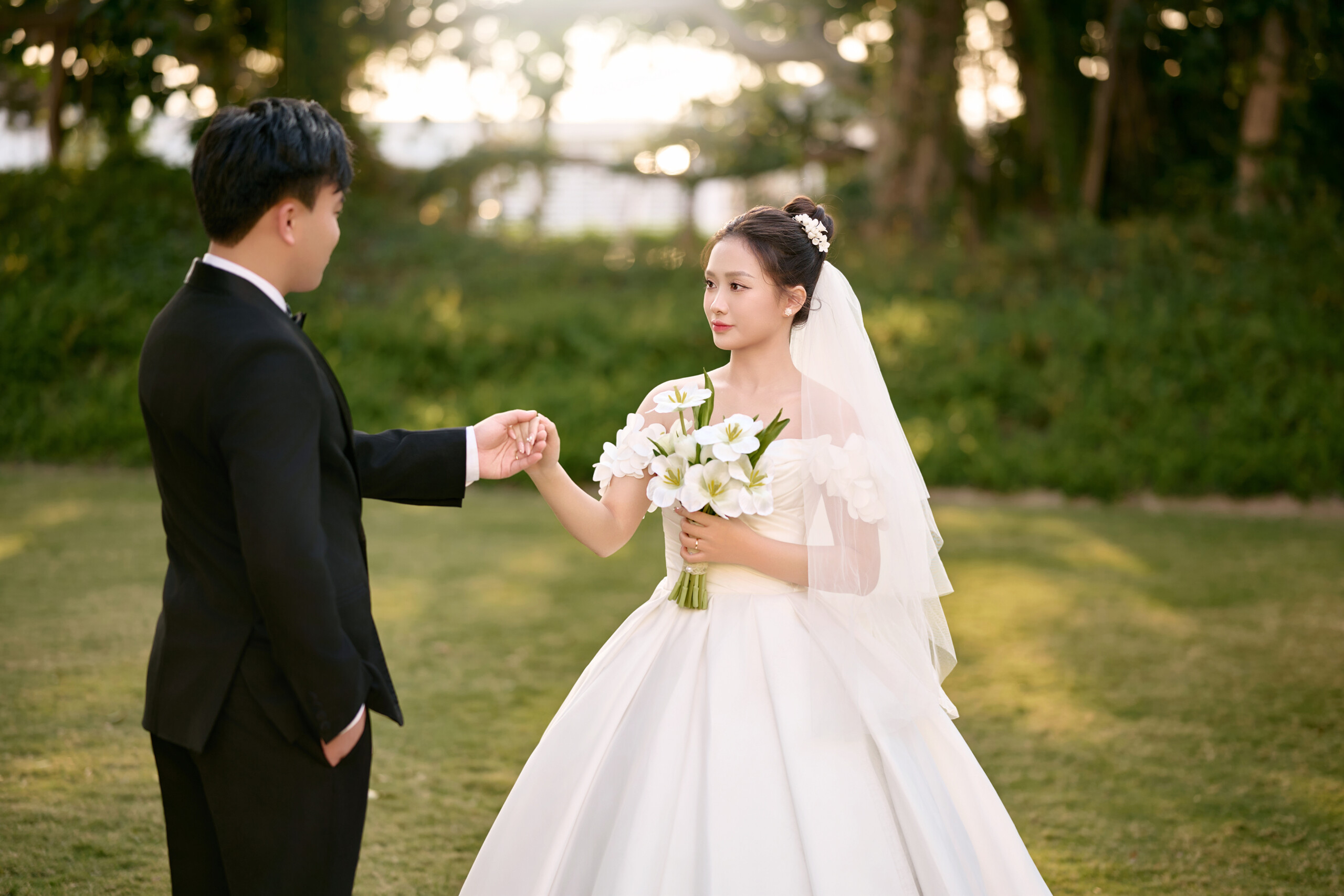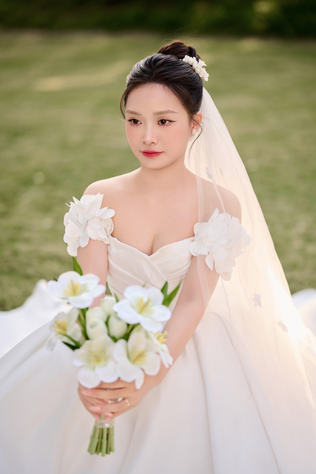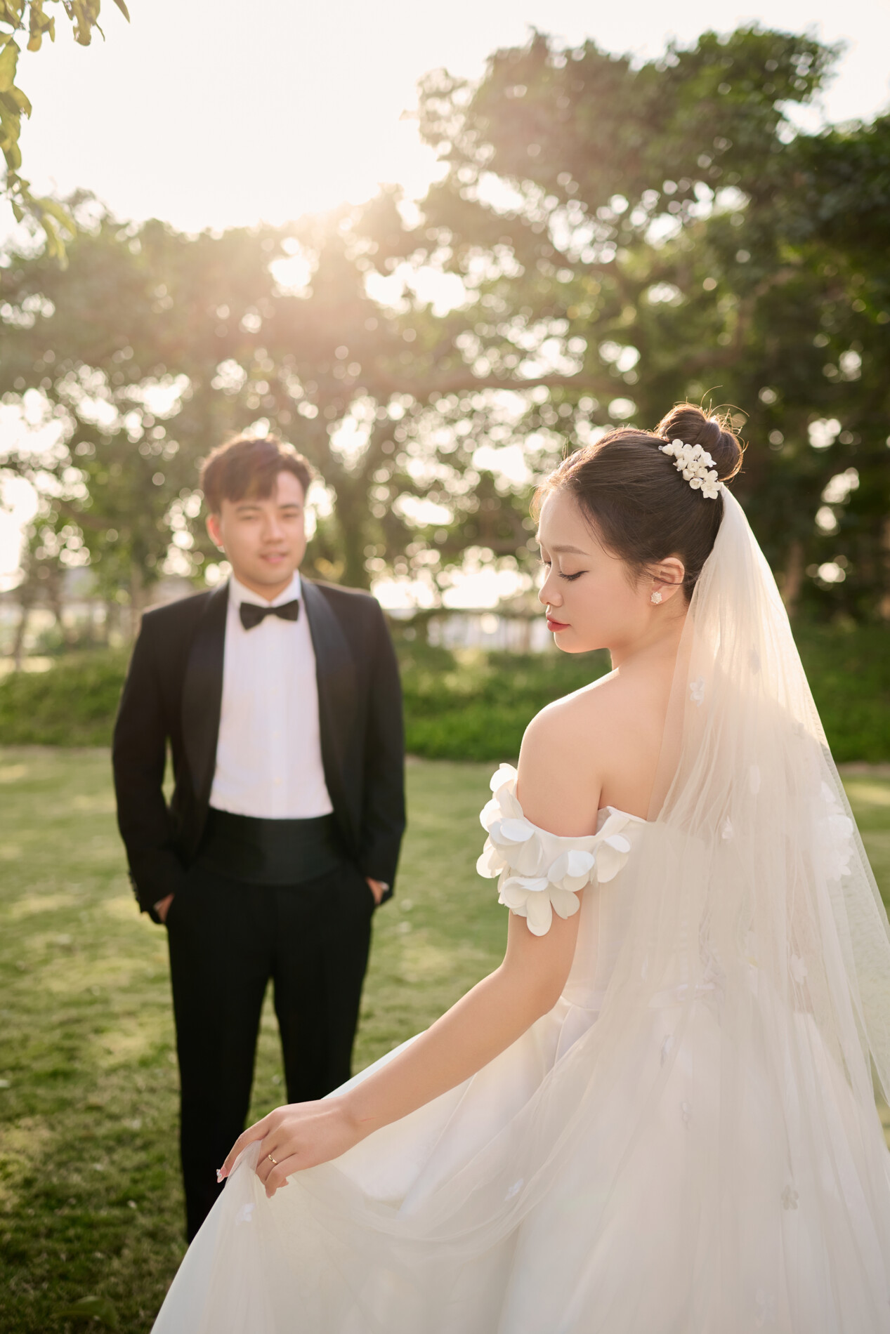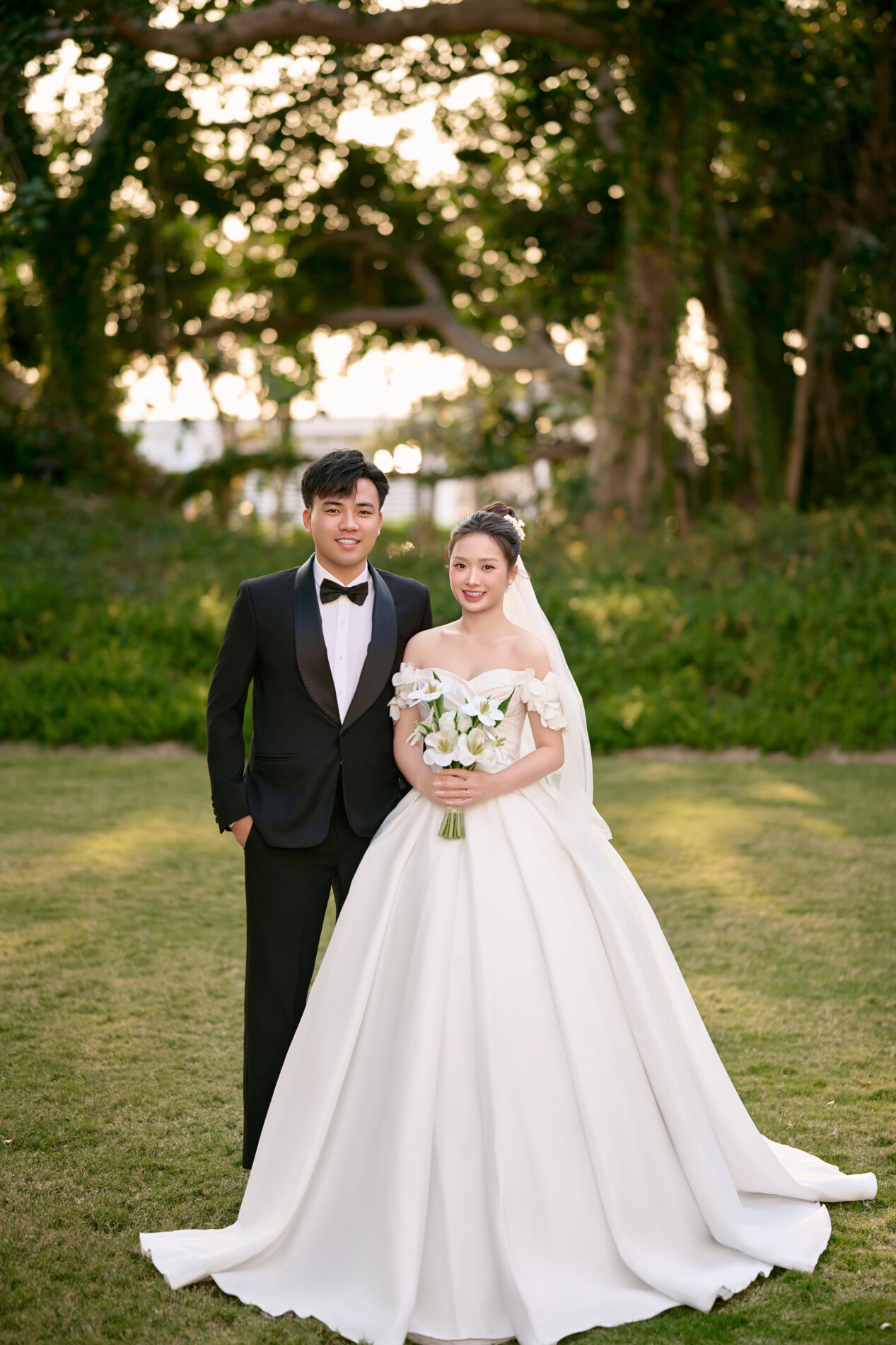 “Định mệnh đã dẫn lối em đến khoảnh khắc tuyệt vời này, khi em được khoác lên mình chiếc váy cưới tinh khôi, trao trọn trái tim cho mối tình đầu của mình, là anh.”